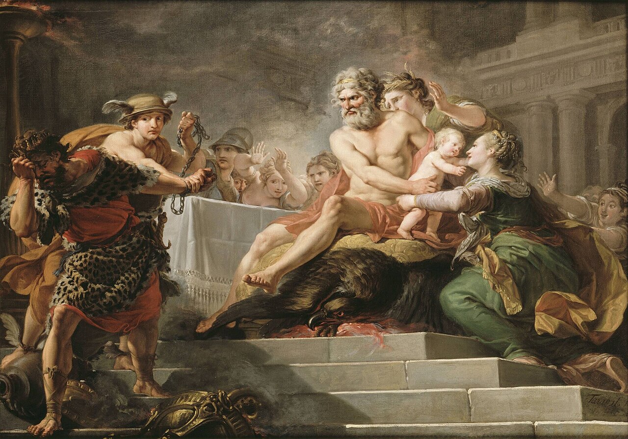 Освобождённые дети споро подросли и исполнили сказанное оракулом: свергли каннибала-отца и заняли его место. Не в смысле покушать.
