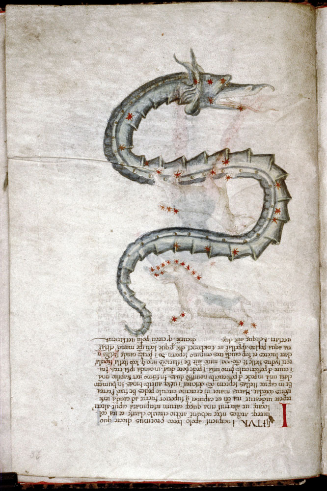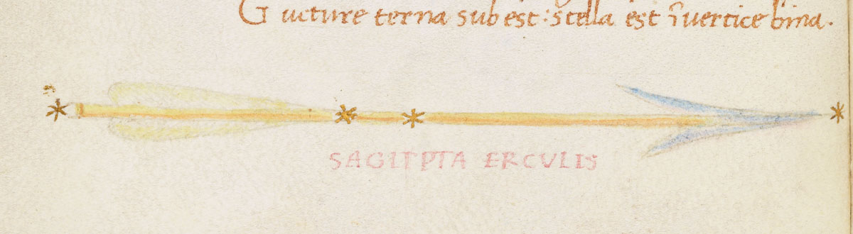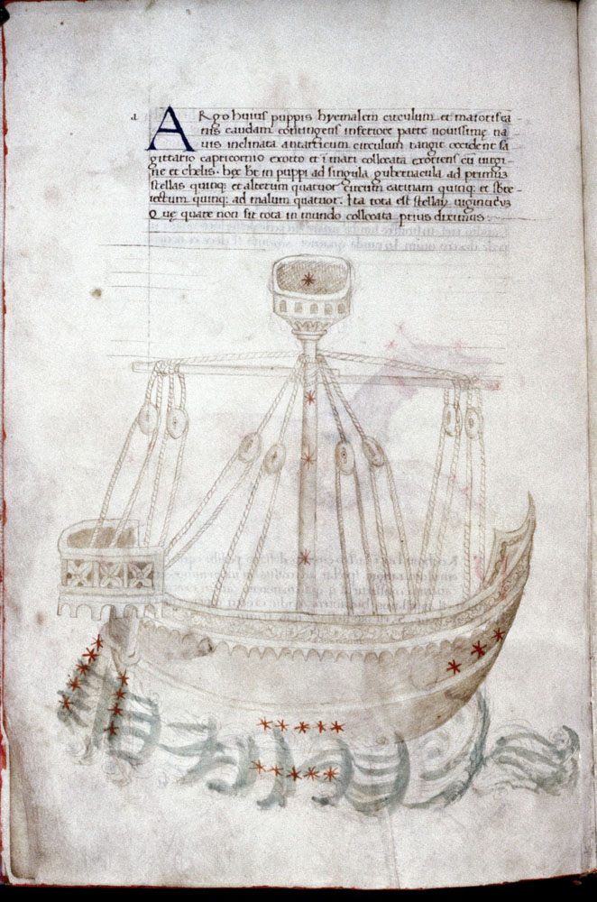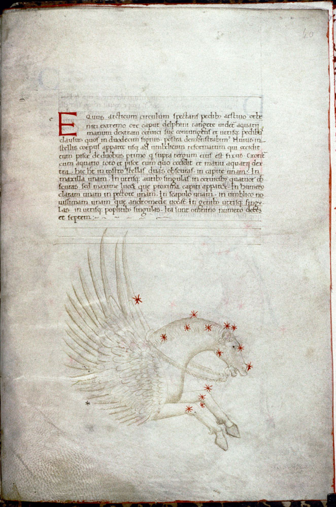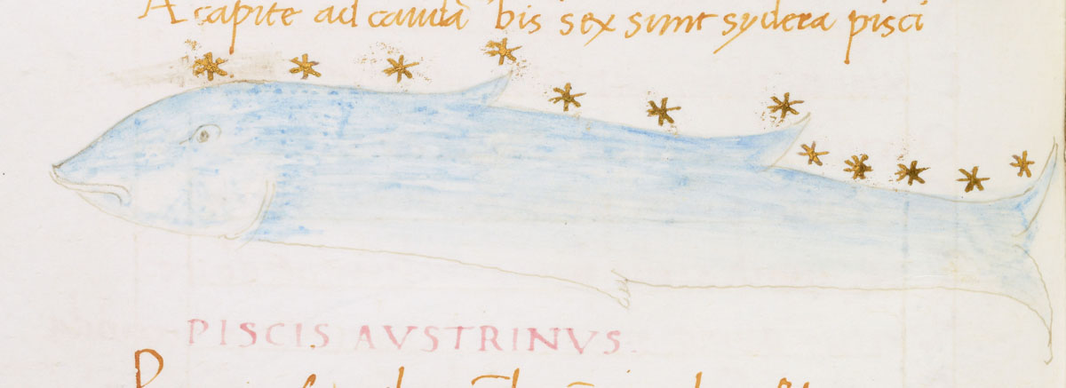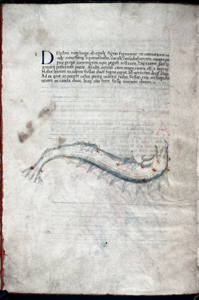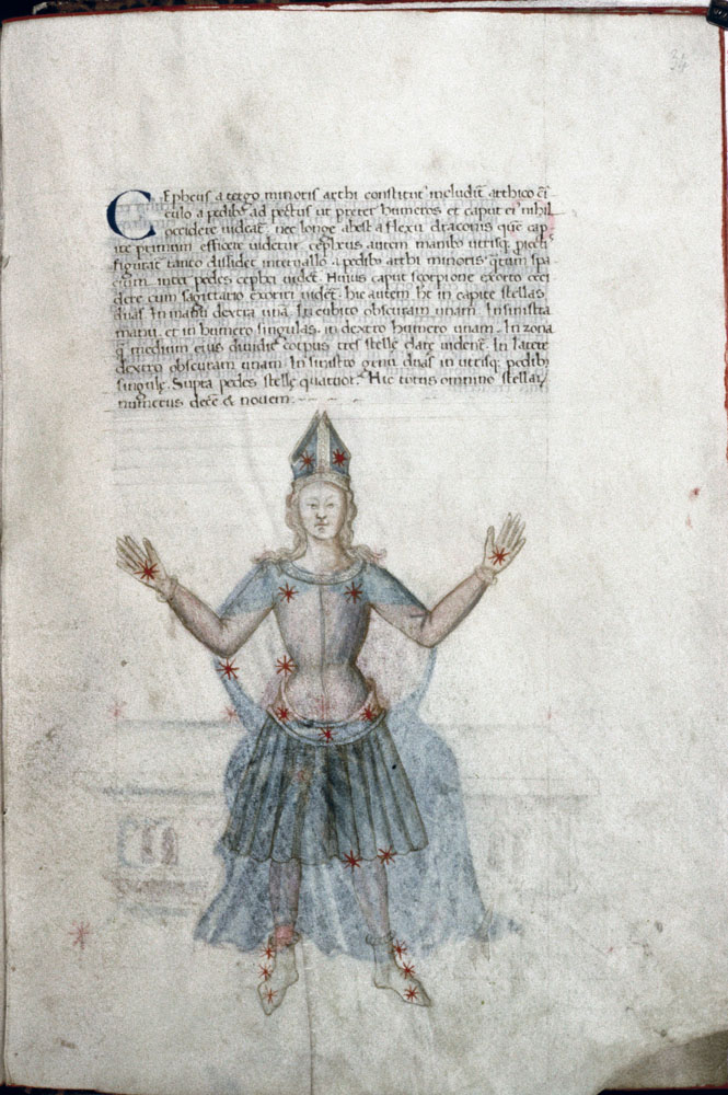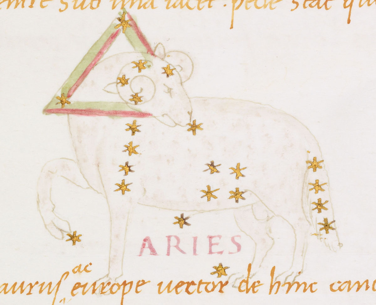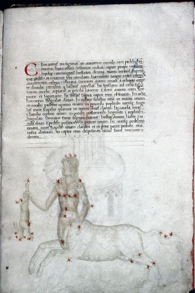 «Аратея», «Явления» Арата Солийского в переводе Цицерона, IX в. (820-840, 830?) Из манускрипта Harley MS 647 («Харлеанский Арат»), коллекции астрологических и астрономических текстов конца IX века - XI в; Франция, Реймс (?). Каллиграммы созвездий — соответствующие описания из «Астрономии» Гигина.