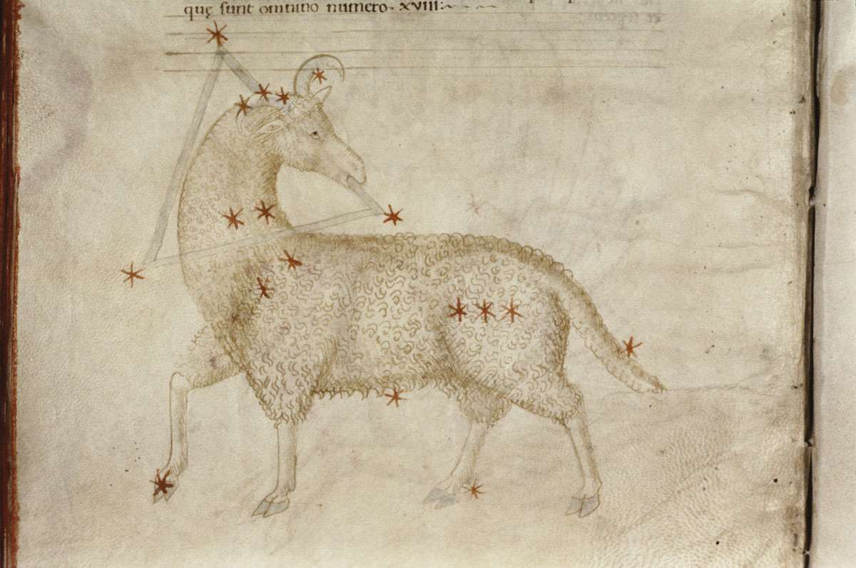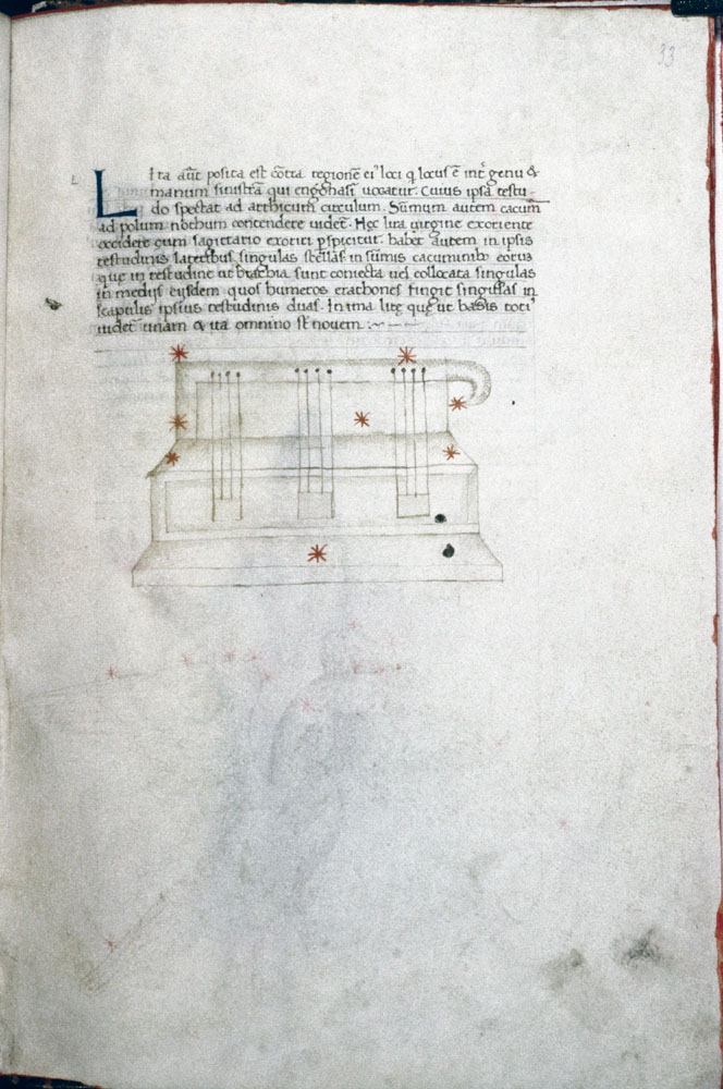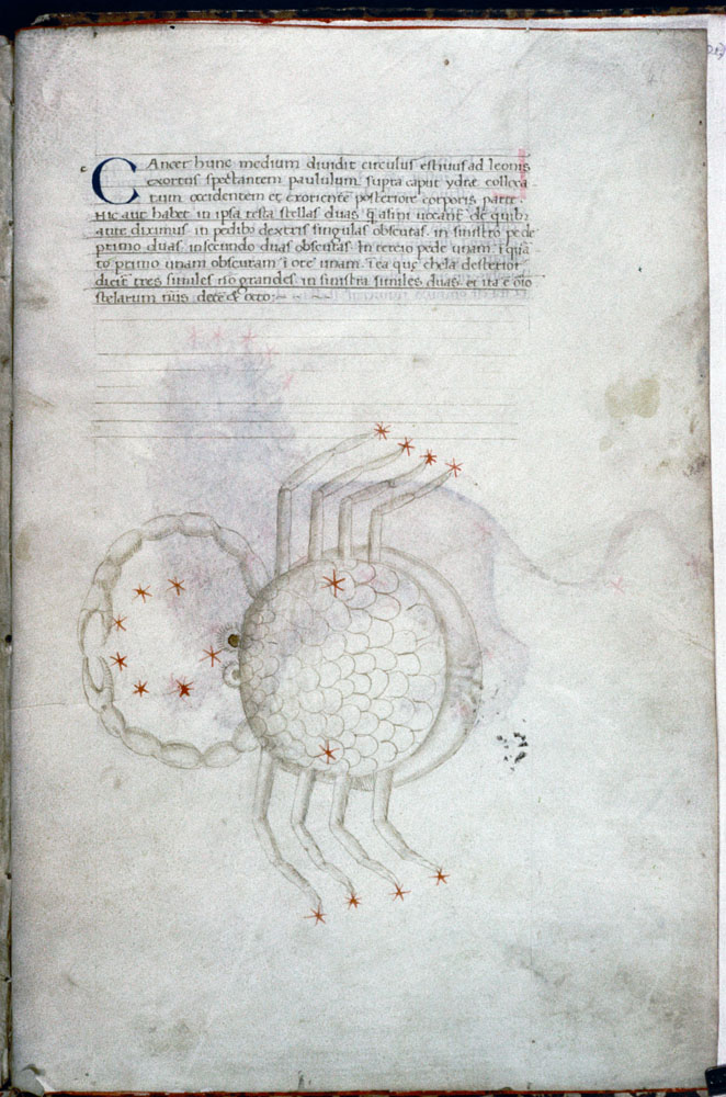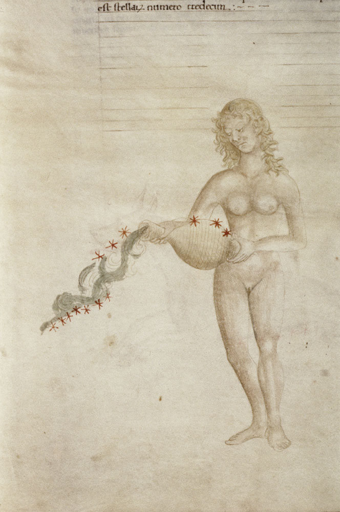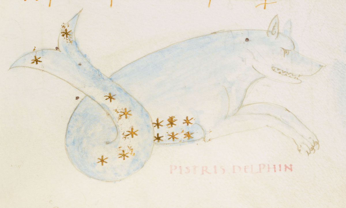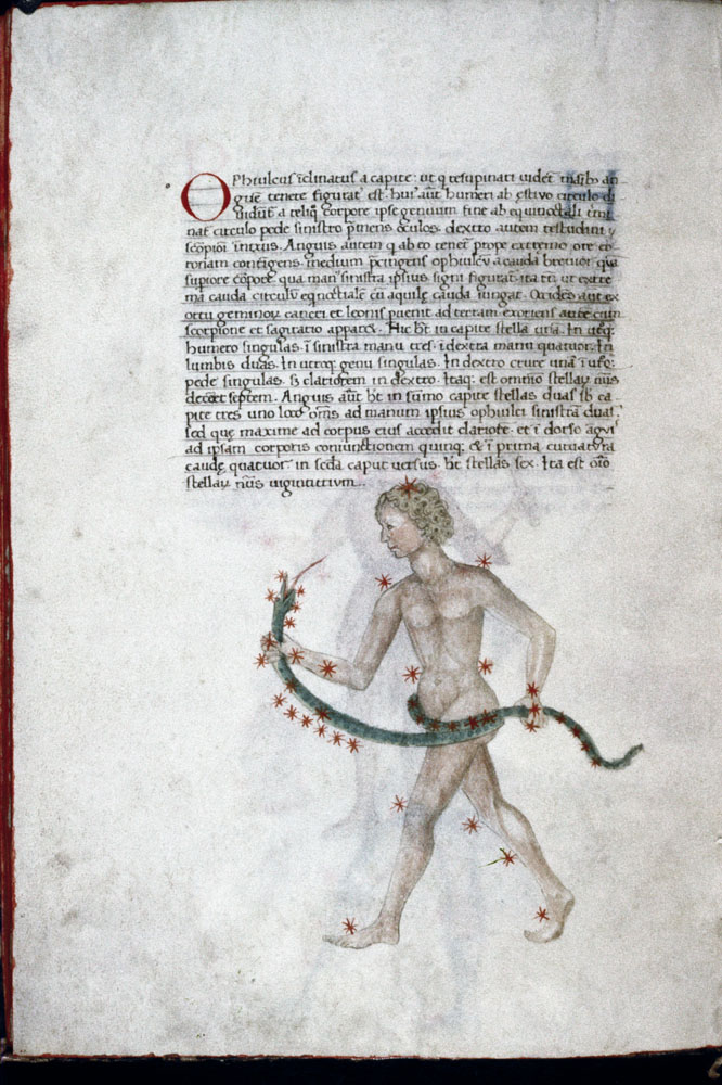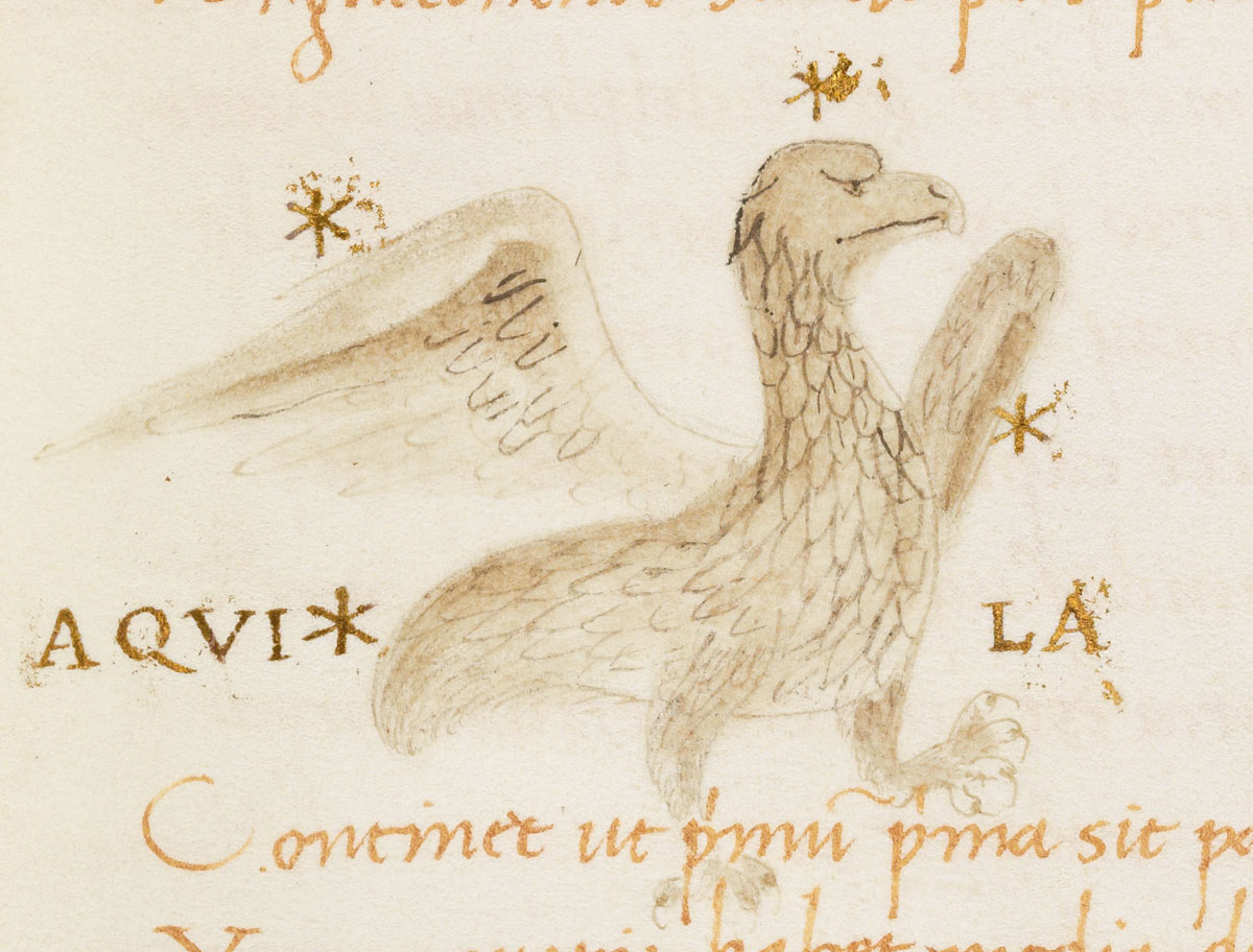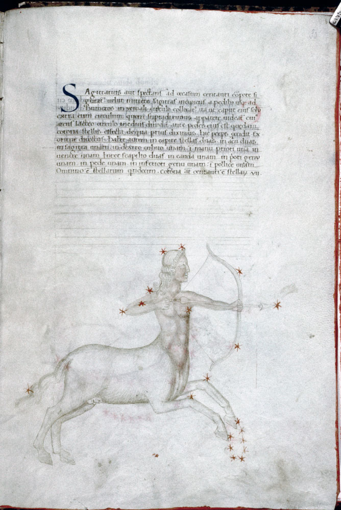 «Аратея», «Явления» Арата Солийского в переводе Цицерона, IX в. (820-840, 830?) Из манускрипта Harley MS 647 («Харлеанский Арат»), коллекции астрологических и астрономических текстов конца IX века - XI в; Франция, Реймс (?). Каллиграммы созвездий — соответствующие описания из «Астрономии» Гигина.
