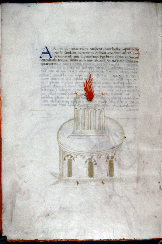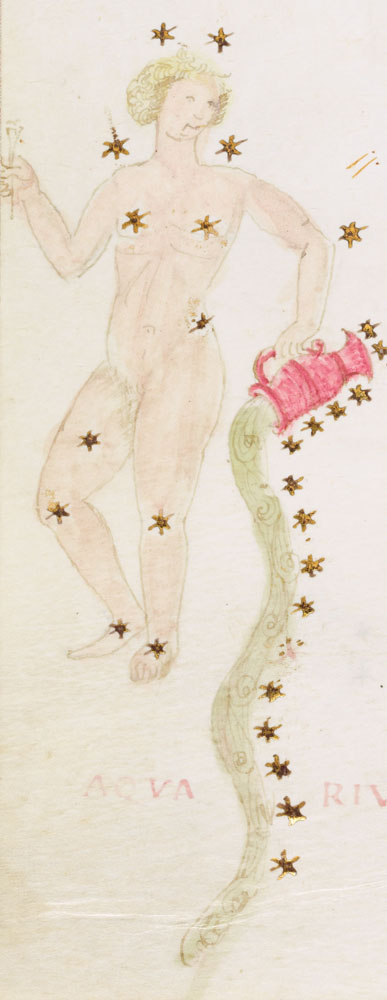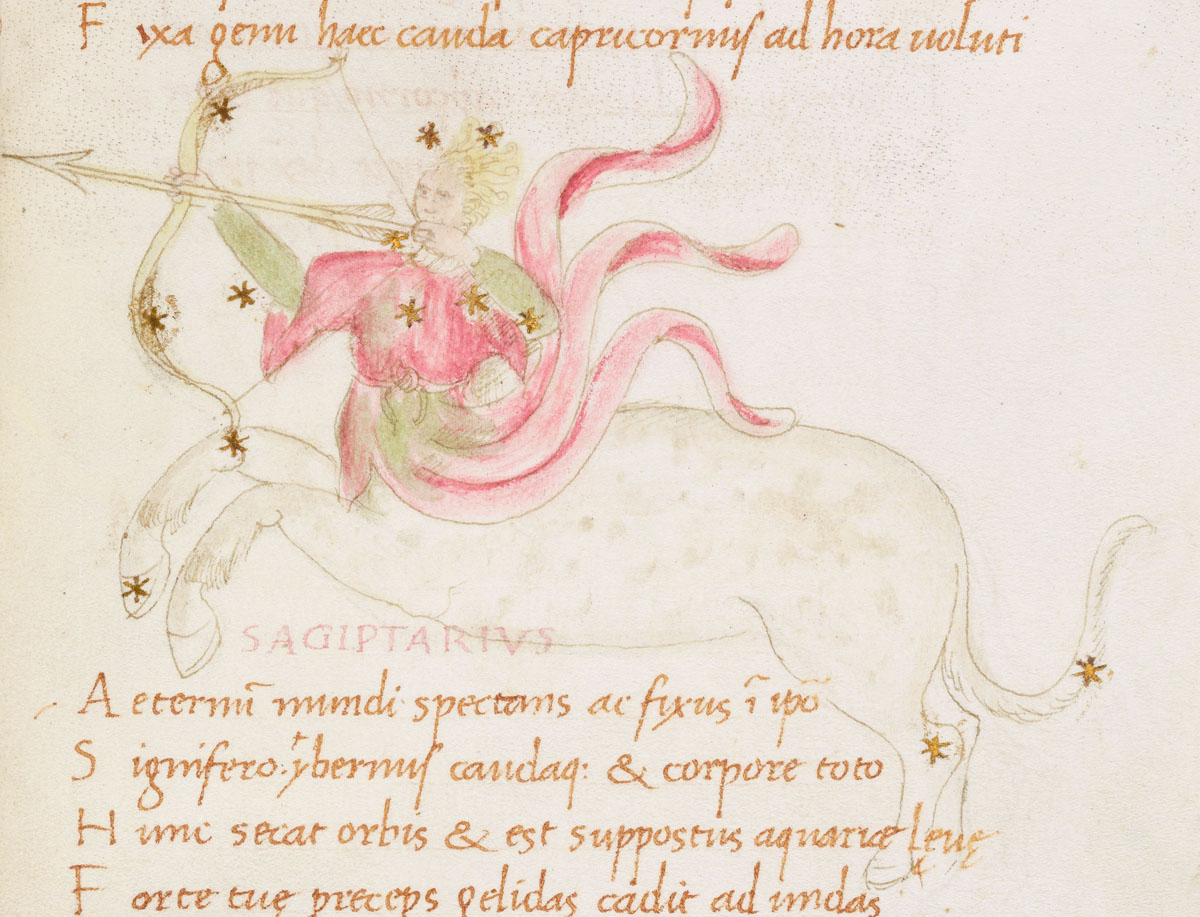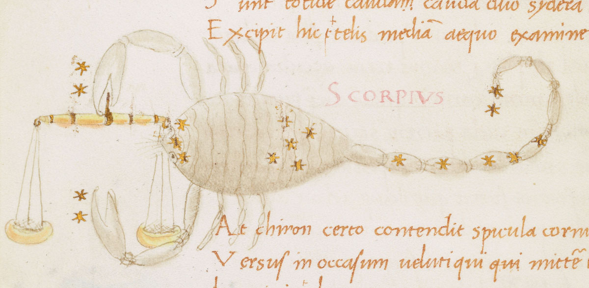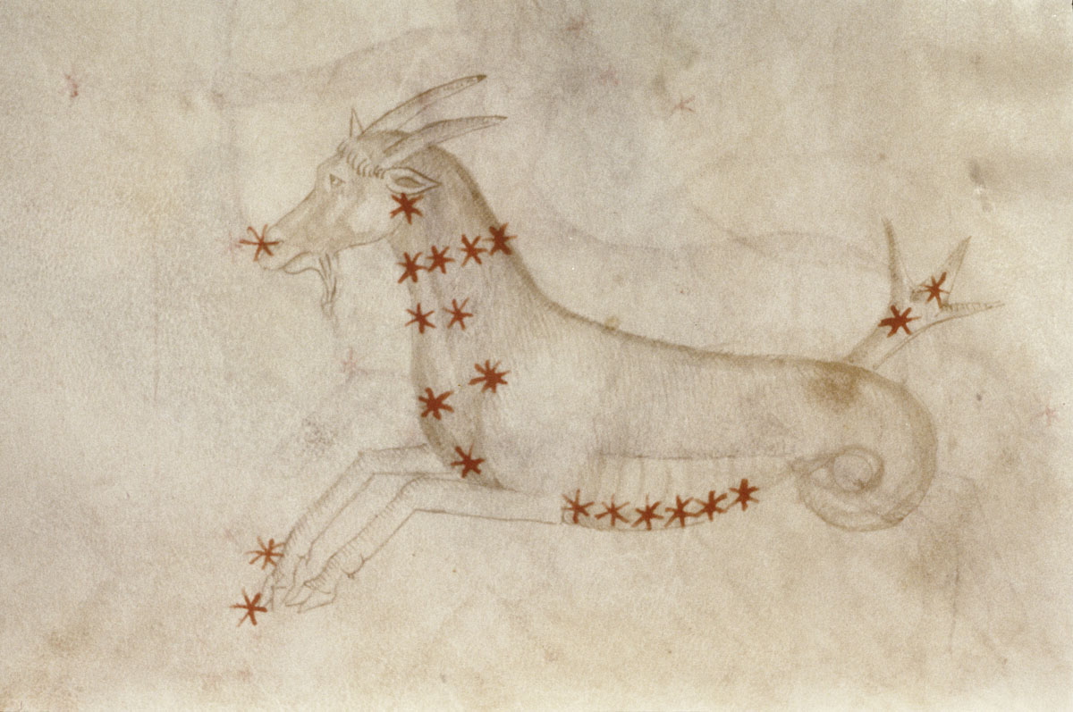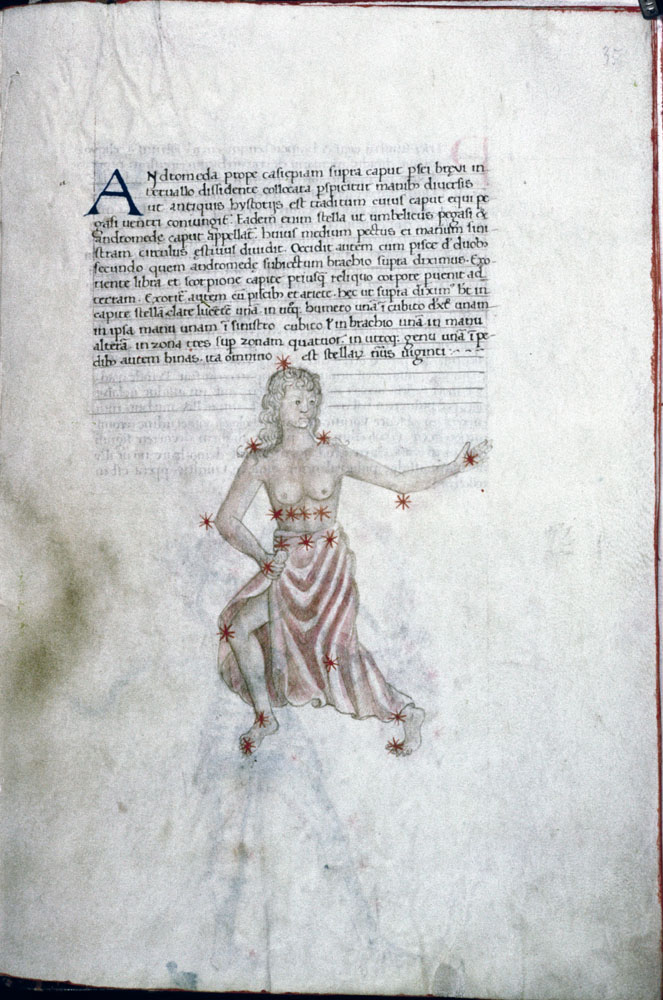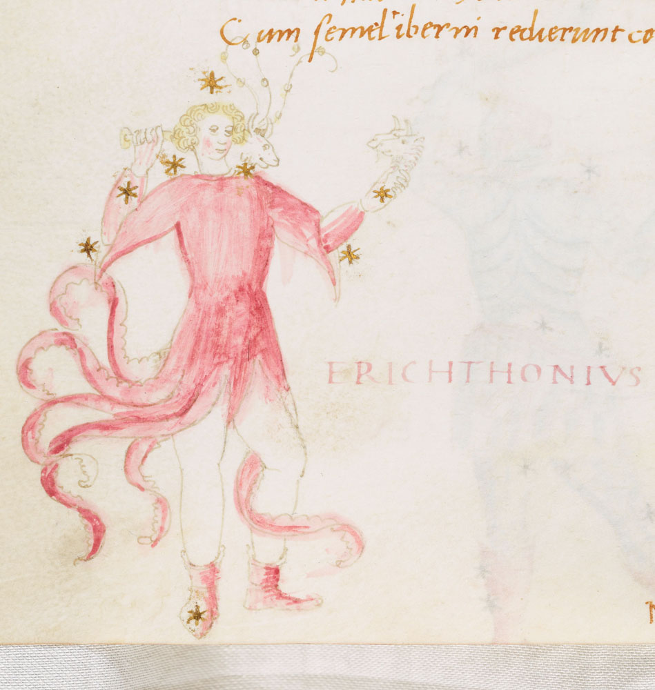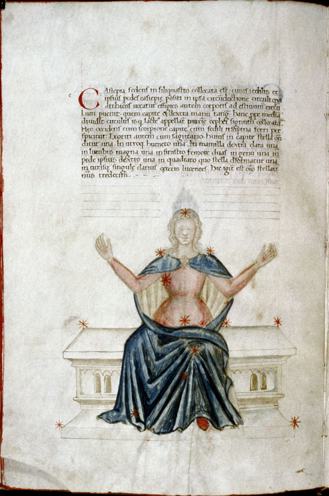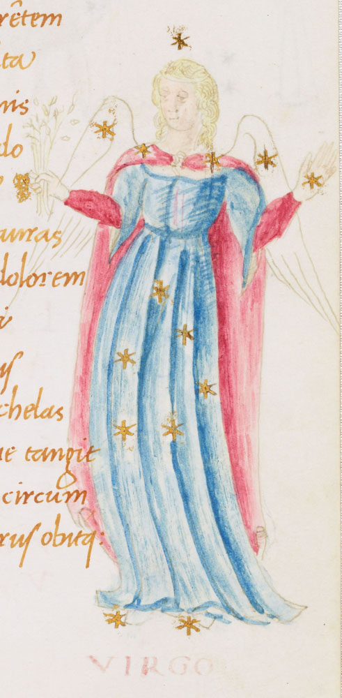 «Аратея», «Явления» Арата Солийского в переводе Цицерона, IX в. (820-840, 830?) Из манускрипта Harley MS 647 («Харлеанский Арат»), коллекции астрологических и астрономических текстов конца IX века - XI в; Франция, Реймс (?). Каллиграммы созвездий — соответствующие описания из «Астрономии» Гигина.