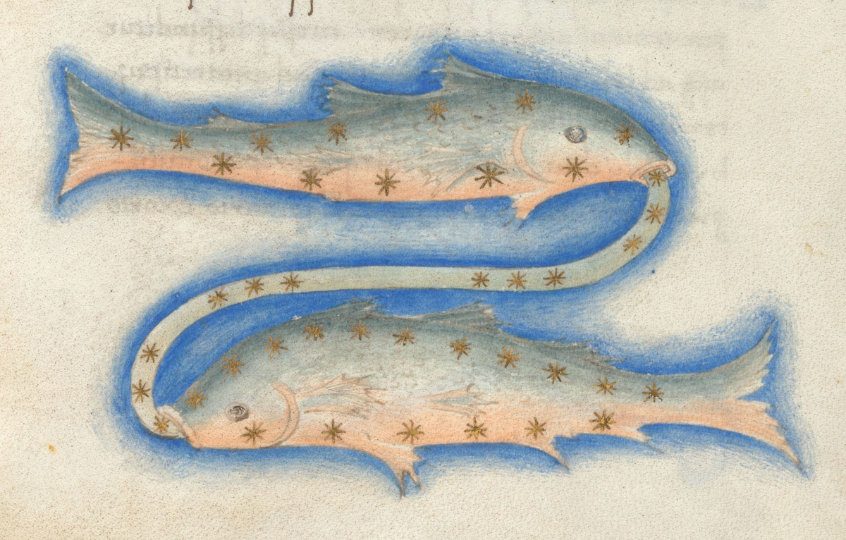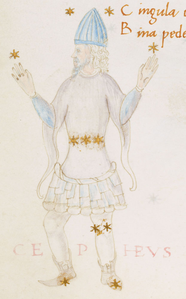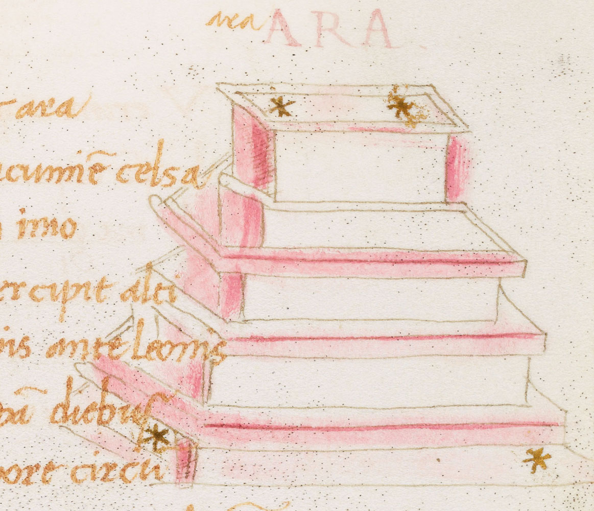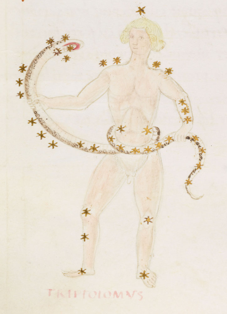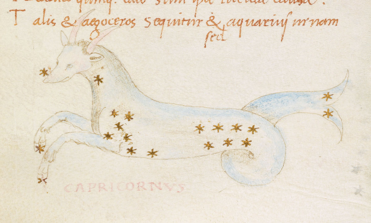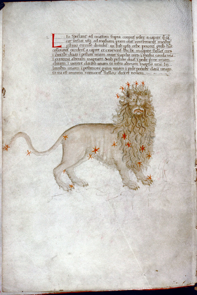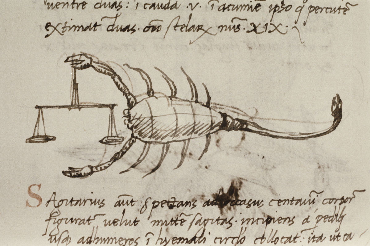 «Аратея», «Явления» Арата Солийского в переводе Цицерона, IX в. (820-840, 830?) Из манускрипта Harley MS 647 («Харлеанский Арат»), коллекции астрологических и астрономических текстов конца IX века - XI в; Франция, Реймс (?). Каллиграммы созвездий — соответствующие описания из «Астрономии» Гигина.