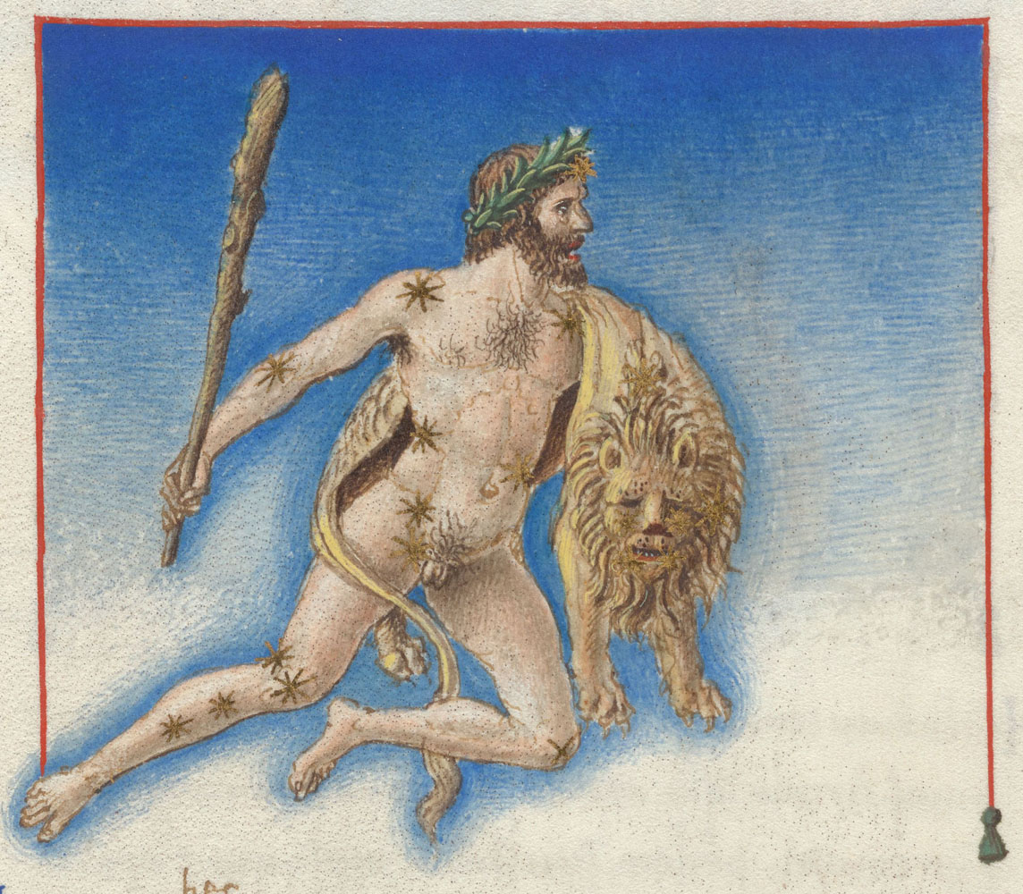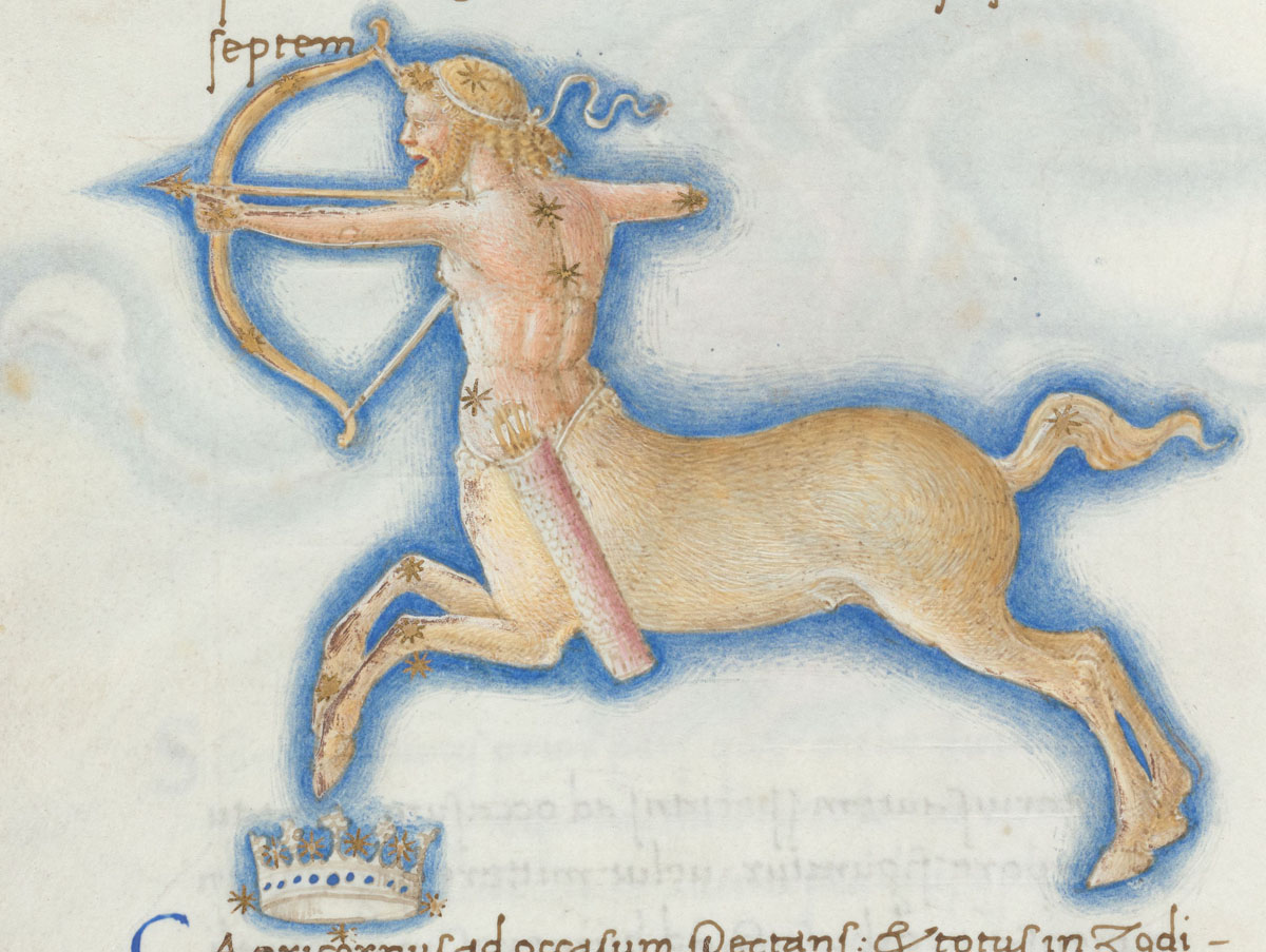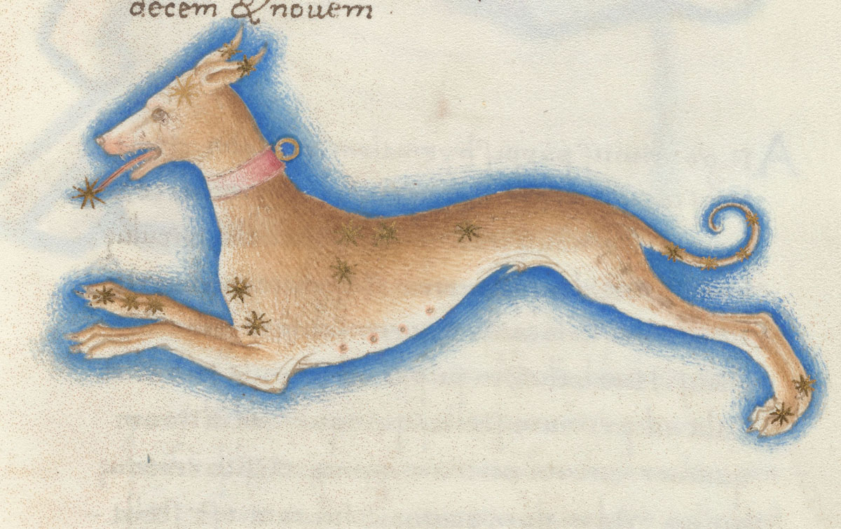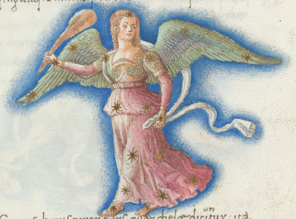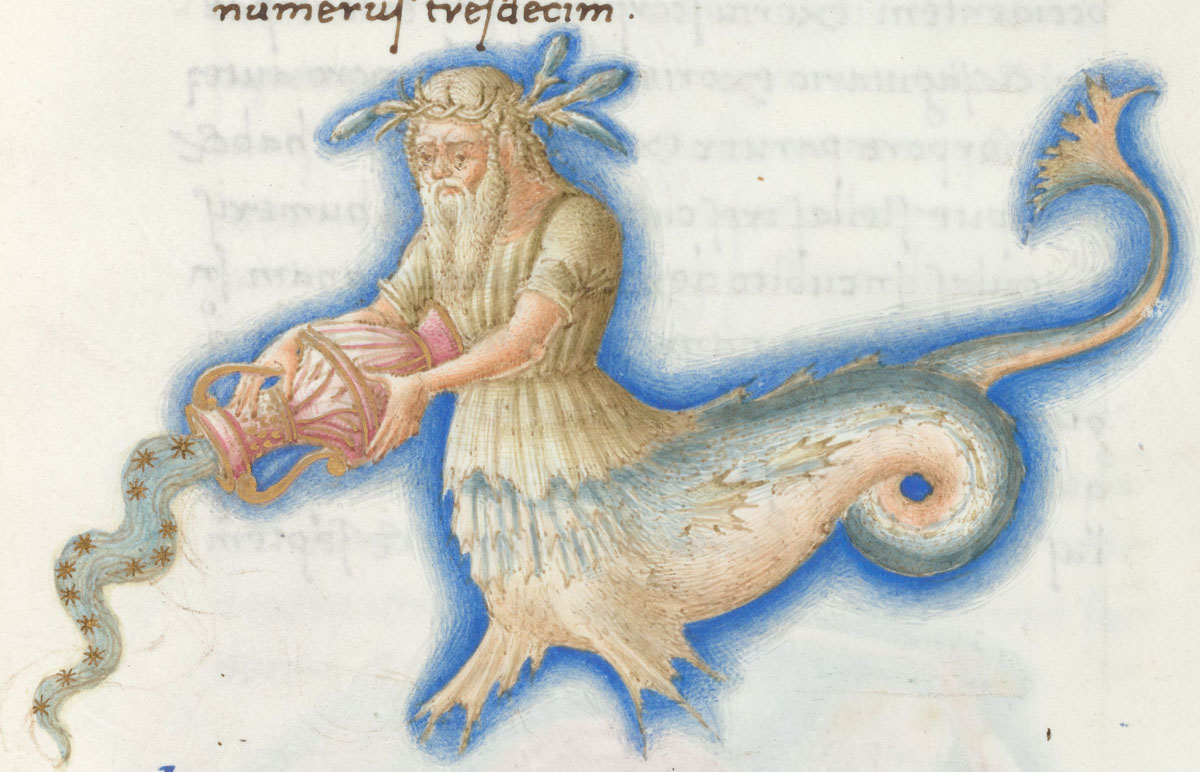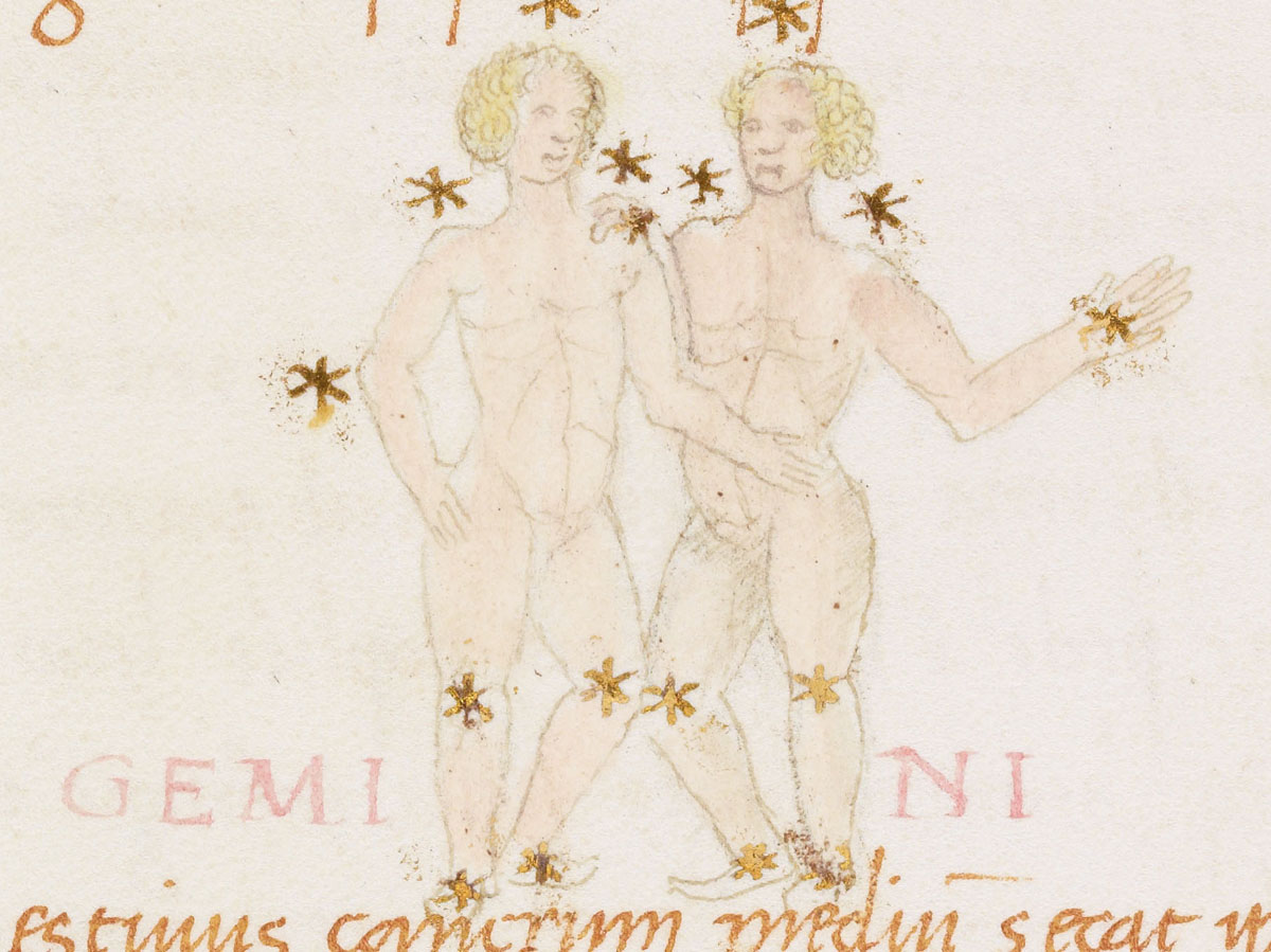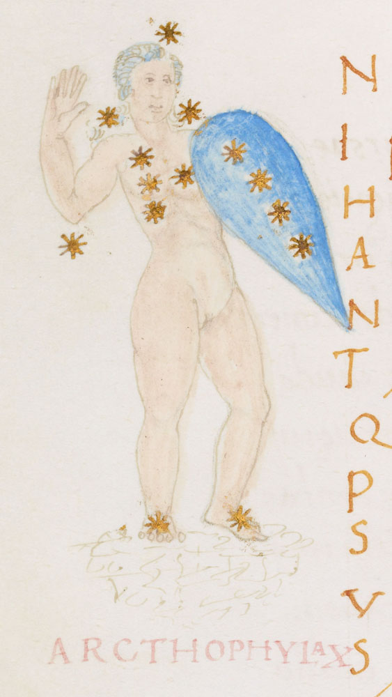 «Аратея», «Явления» Арата Солийского в переводе Цицерона, IX в. (820-840, 830?) Из манускрипта Harley MS 647 («Харлеанский Арат»), коллекции астрологических и астрономических текстов конца IX века - XI в; Франция, Реймс (?). Каллиграммы созвездий — соответствующие описания из «Астрономии» Гигина.
