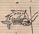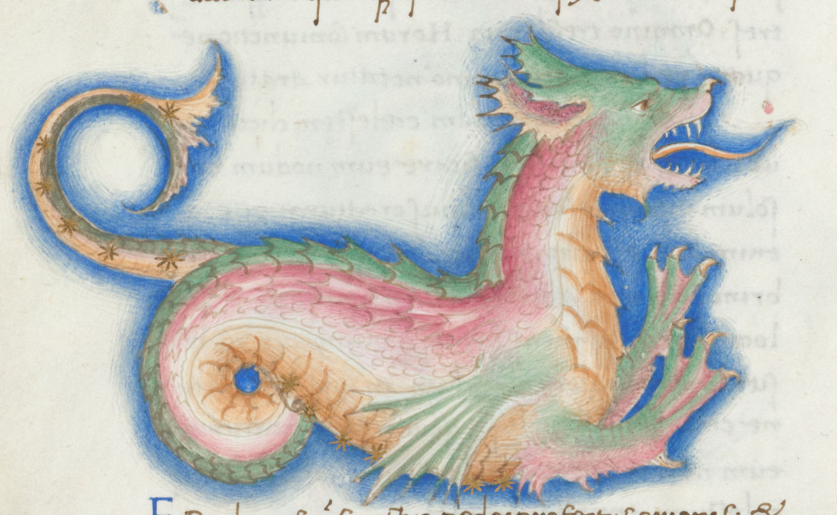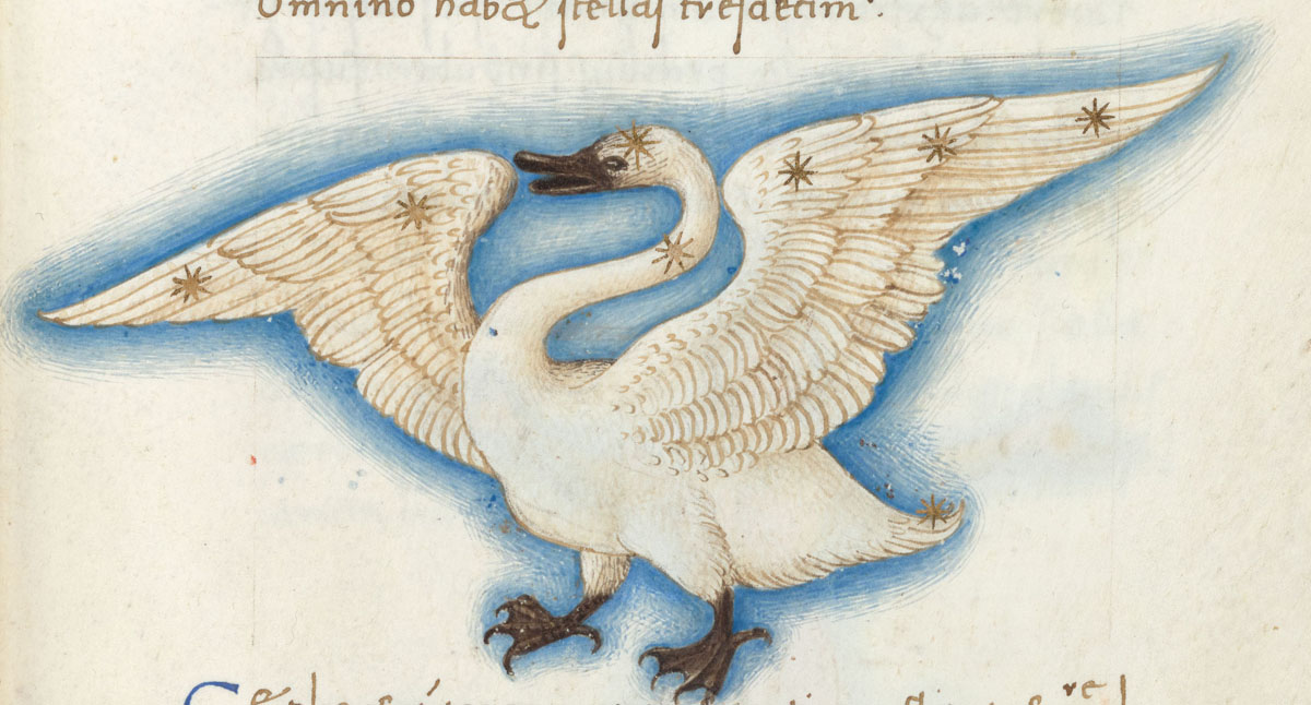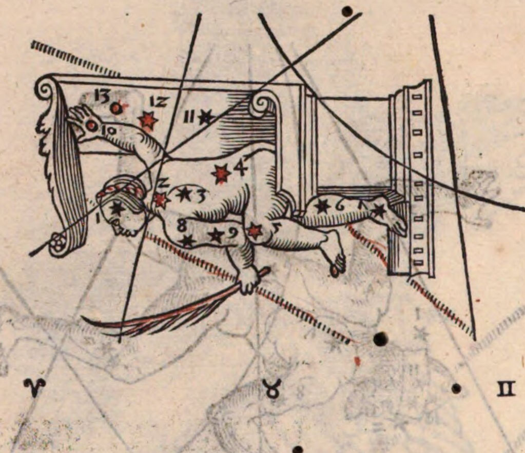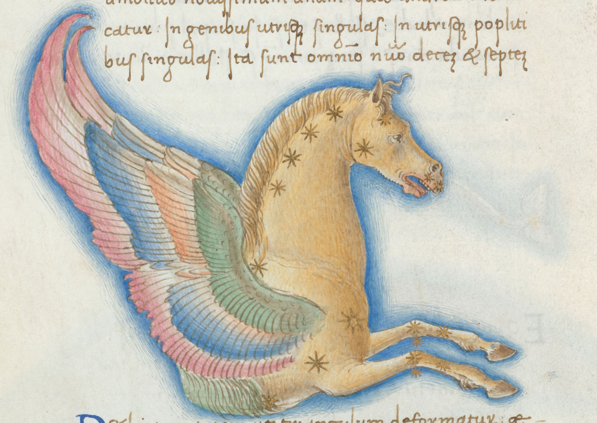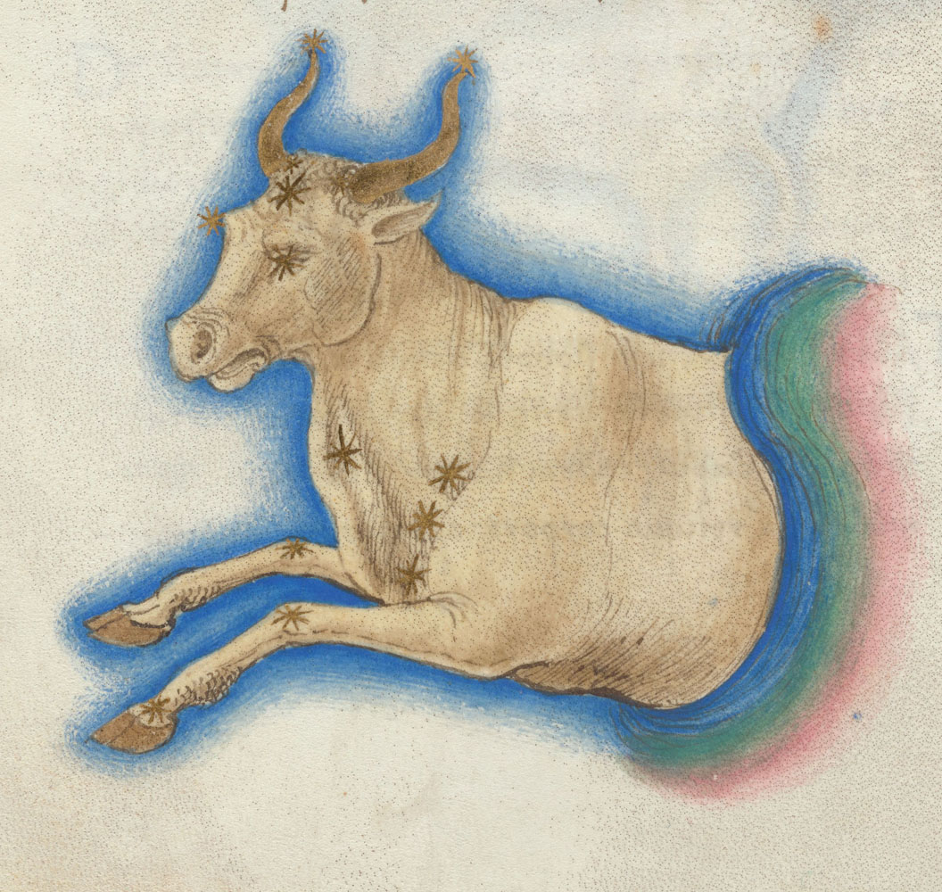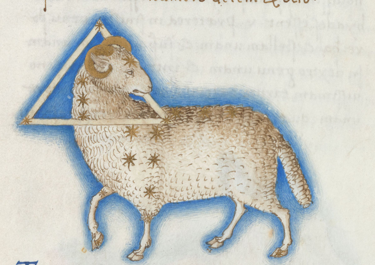 «Аратея», «Явления» Арата Солийского в переводе Цицерона, IX в. (820-840, 830?) Из манускрипта Harley MS 647 («Харлеанский Арат»), коллекции астрологических и астрономических текстов конца IX века - XI в; Франция, Реймс (?). Каллиграммы созвездий — соответствующие описания из «Астрономии» Гигина.