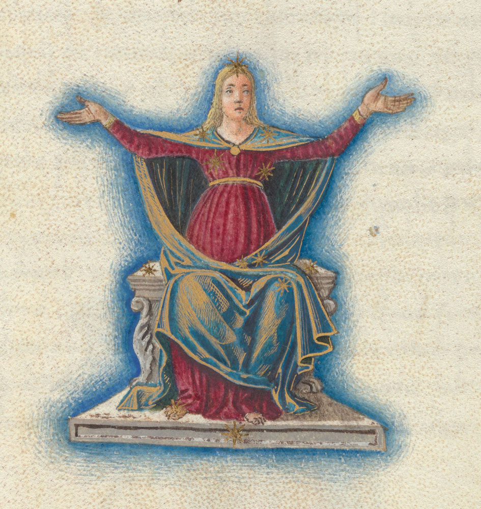 | Poeticon astronomicon | Augustinus Carnerius | 1475, Феррара / Падуя, Италия | 38 миниатюр, Giovanni Vendramin и Мастер Дуче (Douce Master), текст — Francesco Buzzacarini | вероятно, первое издание «Астрономии» |