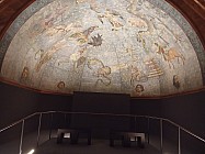 Интересна проекция: казалось бы, в вершине купольной росписи небосвода должен размещаться или полюс Мира, или эклиптики, ну, или, на худой конец, какая-то циркумполярная область с учётом широты: ничего подобного! Вдоль длинной оси купола проходит экватор, северный полюс Мира на середине одной стороны купольного эллипса, южный — на другой, то есть небесная сфера показана «сбоку». Также проведены различные небесные круги: эклиптика с рисками знаков и соответствующими символами, экватор, тропики и — удивительное дело — первый вертикал, большой круг небесный сферы, проходящий через полюса и точки равноденствий. (Вопрос для любителей астрономии: каковы небесные координаты центральной точки купола?)