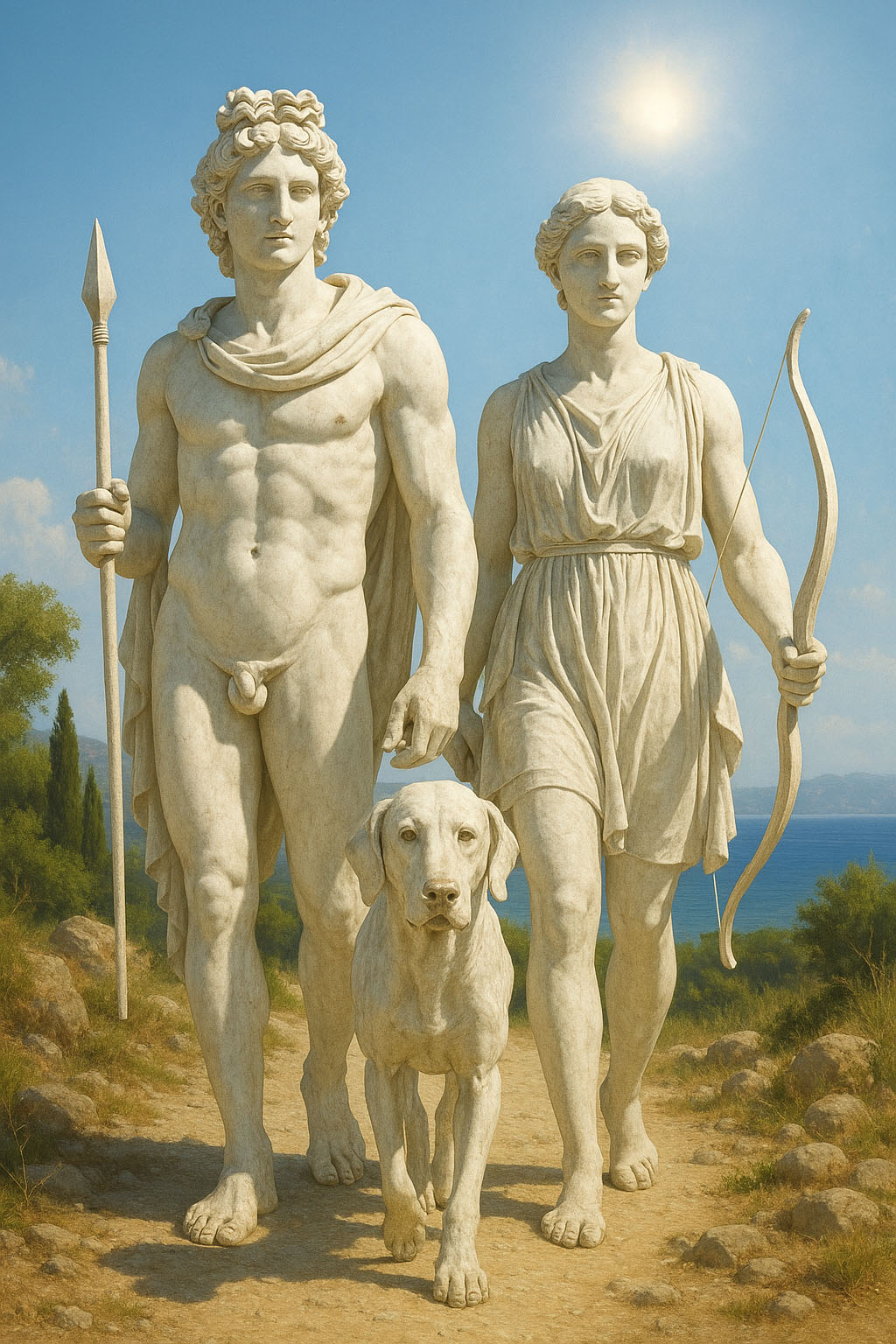 Далее, собака была атрибутом бога врачевания Асклепия (во младенчестве он был спасен пастушьим псом и был, кстати, сыном Аполлона), и собаки при асклепионах, говорят, исцеляли больных. Как воплощение ярости и злобы — священное животное бога войны Ареса. Ну и наконец, атрибут богини охоты и сестры Аполлона Артемиды — охотничья собака.
