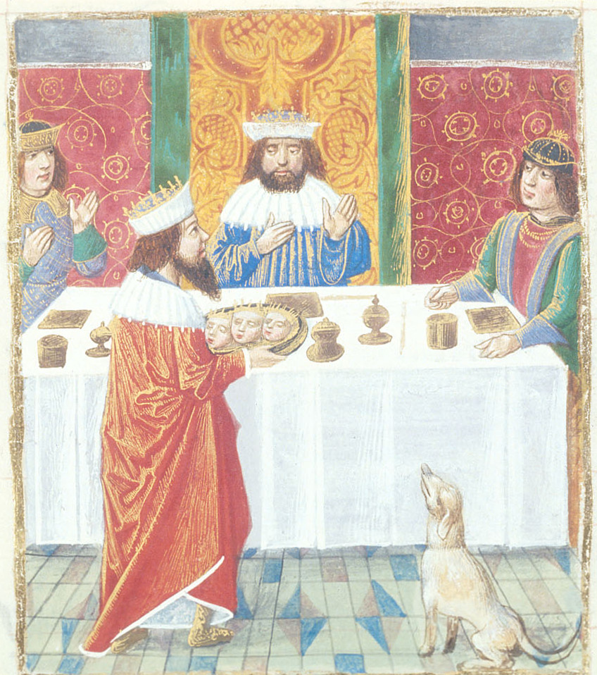 миниатюра из книги De casibus virorum illustrium, 1479 — 1450, Британская библиотека, Великобритания